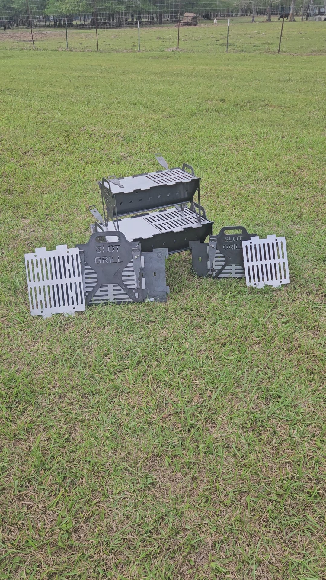 Proudly made in the USA, the Slot Grill Full Size is a heavy duty collapsible charcoal grill built from thick carbon steel. No thin materials. No shortcuts. No flimsy overseas junk.